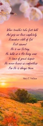 These bookmarkers have a picturesque scene with a poem imprinted on the front and a related Bible verse on the back.